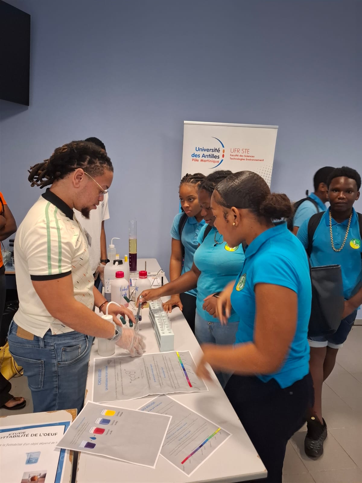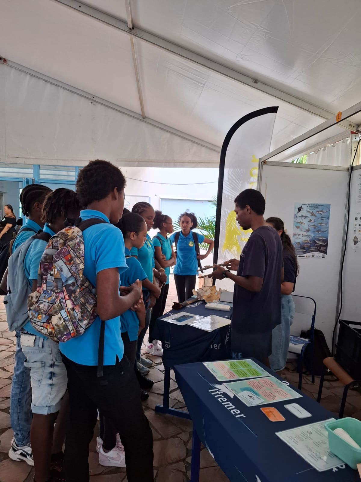 De plus, les élèves ont été sensibilisés à la préservation des tortues marines, espèces emblématiques et protégées du littoral martiniquais, grâce à l’intervention de Michel, président de l’association « Reflet D’Culture », qui œuvre pour la sensibilisation et la protection de l’Étang des Salines. Bien que nous n’ayons pas pu assister à une ponte, cette intervention a permis aux élèves de mieux comprendre pourquoi et comment protéger les espèces menacées. Cette sortie s’est poursuivie par la traversée de l’étang qui s’est effectuée sur pilotis. À l’arrivée, les élèves ont observé de nombreux panneaux d’information abordant différentes thématiques par exemple sur la formation de la Martinique.